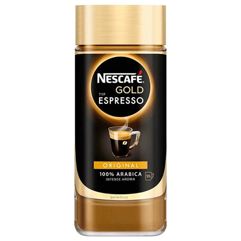 قهوه فوری گلد اسپرسو نسکافه ۱۰۰ گرمNESCAFÉ GOLD Espresso ۱۰۰Grساخته شده از ۱۰۰ درصد دانه های قهوه عربیکاظعمی دلچسب و قوی قهوه محصول برزیل و آفریقای جنوبی این قهوه به صورت پودر شده کامل می باشدطعم ایتالیایی با خامه کرمی عالی